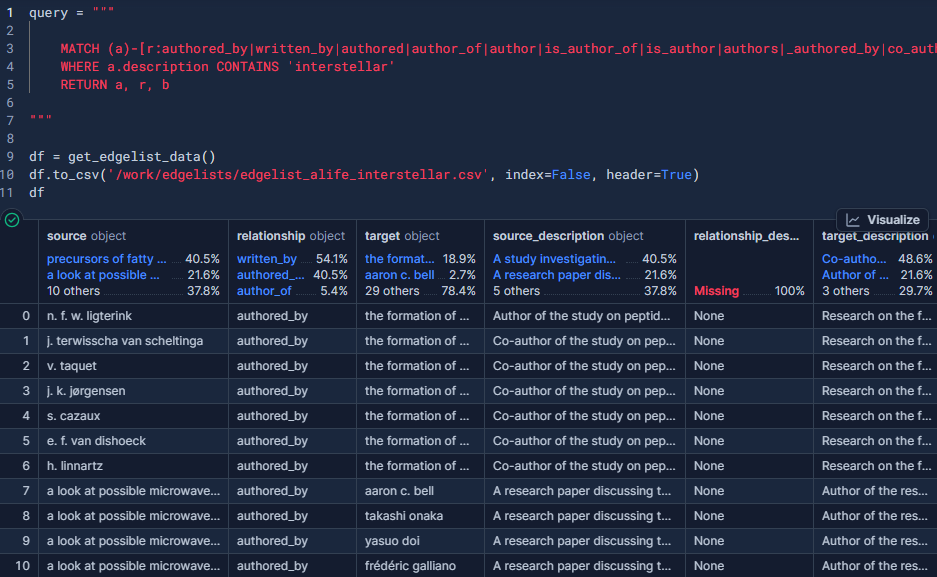return recordsAnd today, I am specifically pulling Arxiv author collaboration networks, so I want to fetch this data as an edgelist DataFrame.