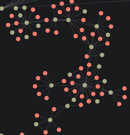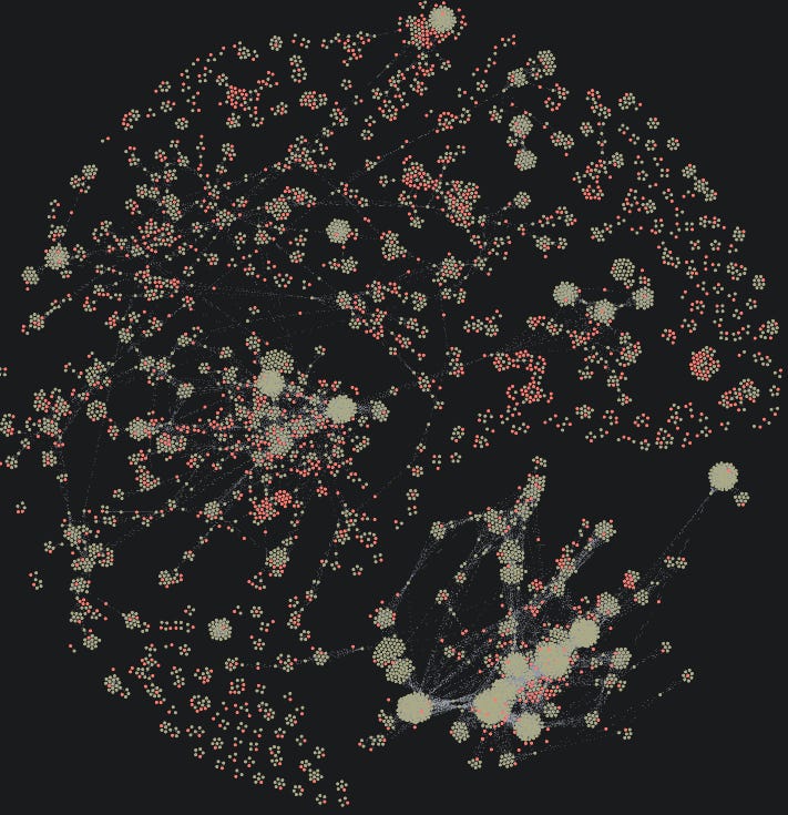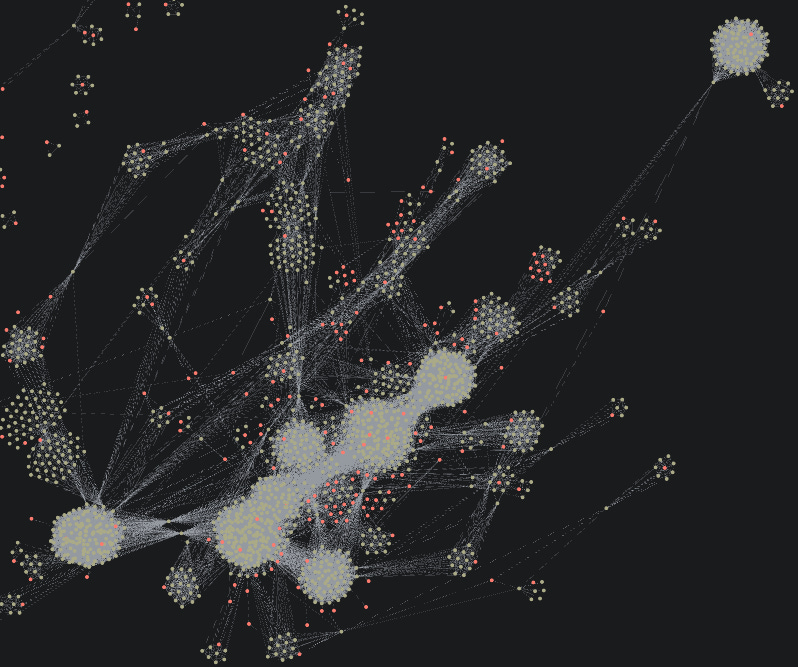 But it is important for us all to understand that we exist inside ecosystems. Look at this denser part of the graph. There is some serious activity in these parts that literally look like parts of a spider web.