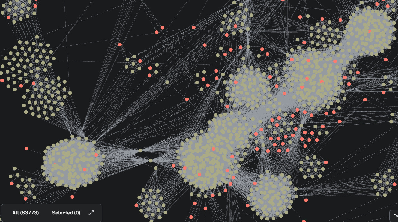 This visualization really makes me happy. It is hard to get a good look at this kind of density, and Neo4j is doing really well. I’d love to export this into an edgelist and play with it in Cosmograph!