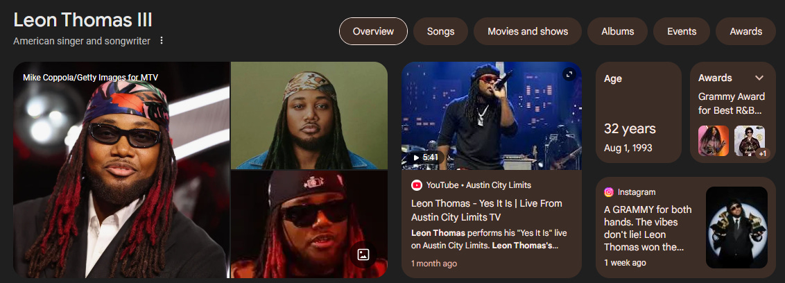 And this will be the starting point for our exploration, as I want to explore these big venues today. However, I do see one well-connected artist in there, Leon Thomas.