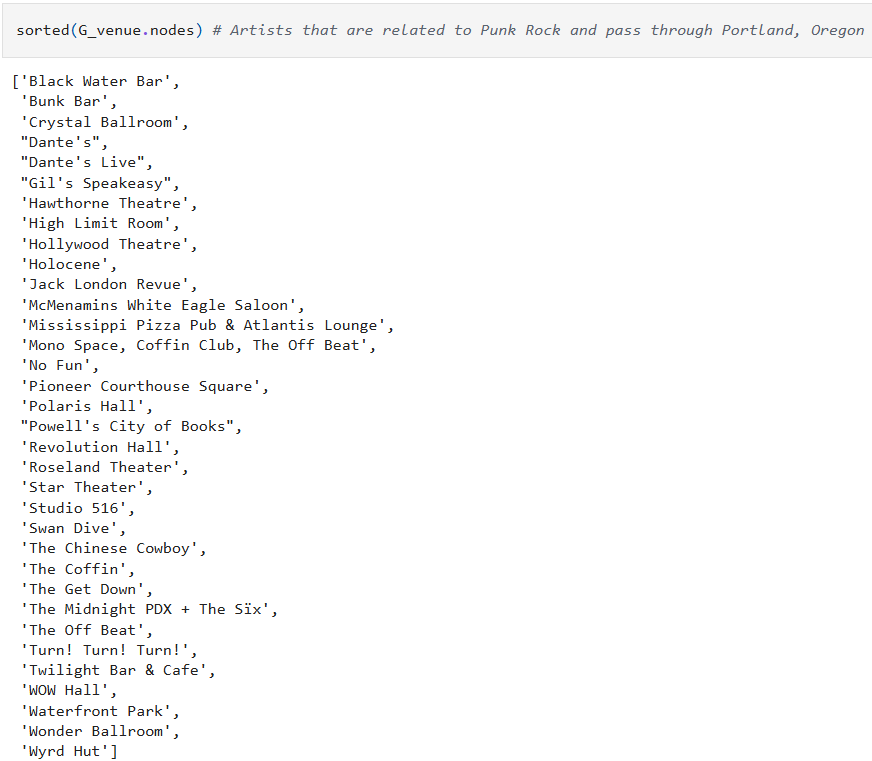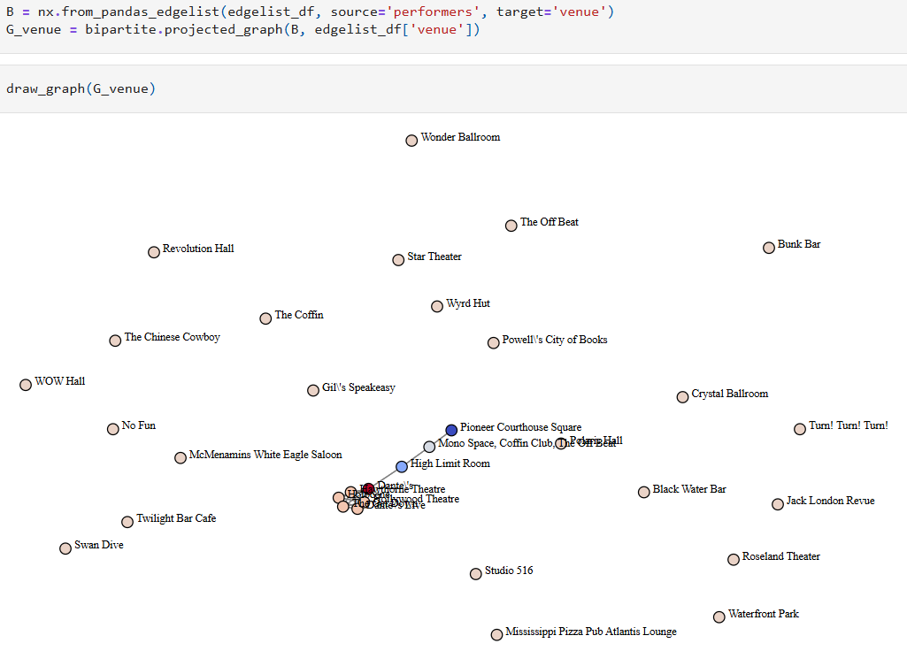 I did the same thing as before, I just used venue instead of performers. See, graphs are like a kaleidoscope. If you simply change the perspective, you can see new things. It’s the same graph, projected differently.